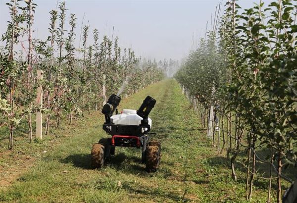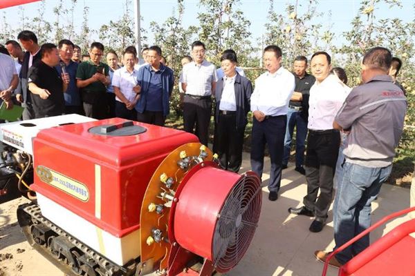 會議現(xiàn)場展示了果園開溝施肥、植保、除草、修剪套袋、采收、運輸、防災等9大類30余臺機具;演示了防凍煙霧發(fā)生器、開溝施肥機、避障割草機、行間割草機、遙控打藥機、果園高空作業(yè)平臺、修剪機、果園無人車等21臺新機具。