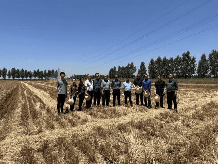 615日陜西省農(nóng)業(yè)機械研究所有限公司相關技術人員應陜西省農(nóng)業(yè)機械產(chǎn)業(yè)技術體系邀請,赴寶雞市陳倉區(qū)小麥寬幅播種試驗示范基地參加了現(xiàn)場實收測產(chǎn)和研討會。