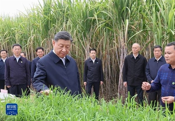 14日下午,習(xí)近平到來(lái)賓市考察調(diào)研。在國(guó)家現(xiàn)代農(nóng)業(yè)產(chǎn)業(yè)園黃安優(yōu)質(zhì)“雙高”糖料蔗基地,習(xí)近平察看萬(wàn)畝甘蔗林和機(jī)械化作業(yè)收割場(chǎng)景,聽取基地情況介紹。他走進(jìn)甘蔗林,詳細(xì)了解甘蔗良種繁育技術(shù)要領(lǐng),同蔗農(nóng)、農(nóng)機(jī)手和農(nóng)技人員親切交流。習(xí)近平指出,廣西是我國(guó)蔗糖主產(chǎn)區(qū),要把這一特色優(yōu)勢(shì)產(chǎn)業(yè)做強(qiáng)做大,為保障國(guó)家糖業(yè)安全、促進(jìn)蔗農(nóng)增收致富發(fā)揮更大作用。要積極培育和推廣良種、提高機(jī)械化作業(yè)水平,建設(shè)好現(xiàn)代農(nóng)業(yè)產(chǎn)業(yè)園。要探索建立更加穩(wěn)定的利益聯(lián)結(jié)機(jī)制,讓廣大農(nóng)民共享農(nóng)村改革和發(fā)展成果。他祝愿鄉(xiāng)親們的生活像甘蔗一樣甜蜜。