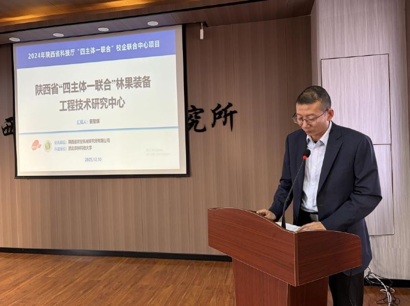 12月10日,陜西省“四主體一聯(lián)合”林果裝備工程技術(shù)研究中心(以下簡(jiǎn)稱(chēng)工程中心)工作推進(jìn)暨成果發(fā)布會(huì)在咸陽(yáng)市順利召開(kāi)。陜西省農(nóng)業(yè)機(jī)械研究所有限公司黨總支書(shū)記、董事長(zhǎng)、總經(jīng)理劉曉峰致歡迎辭,陜西科技控股集團(tuán)黨委副書(shū)記、工會(huì)主席孫路、陜西省科技廳農(nóng)村科技處處長(zhǎng)鄭永崗和咸陽(yáng)市科技局副局長(zhǎng)郝杰受邀參會(huì)并致辭。陜西省農(nóng)業(yè)機(jī)械學(xué)會(huì)理事長(zhǎng)、西北農(nóng)林科技大學(xué)機(jī)械與電子工程學(xué)院教授陳軍,陜西科技大學(xué)機(jī)電工程學(xué)院副院長(zhǎng)袁越錦,公司外部董事周延豐、王海超和左鵬軍以及陜西科技大學(xué)王棟教授團(tuán)隊(duì)、合作企業(yè)代表、公司領(lǐng)導(dǎo)以及工程中心研發(fā)團(tuán)隊(duì)等參加會(huì)議。