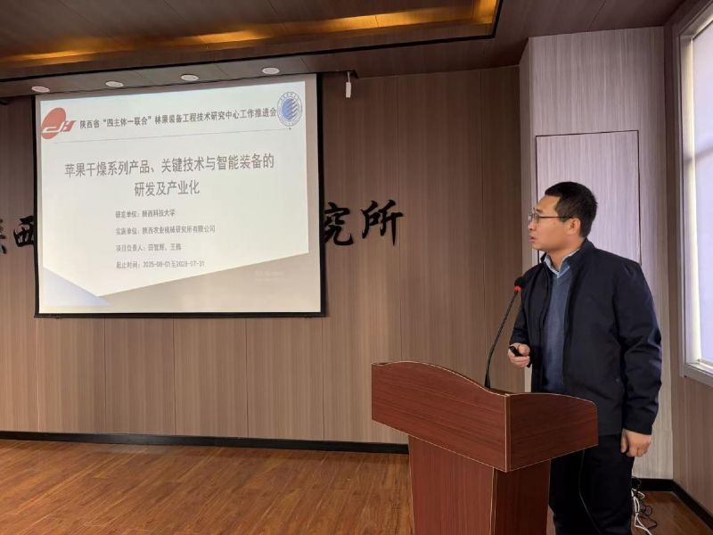 ▲工程中心副主任、公司副總經(jīng)理田智輝作陜西省“四主體一聯(lián)合”林果裝備工程技術(shù)研究中心工作推進(jìn)報(bào)告